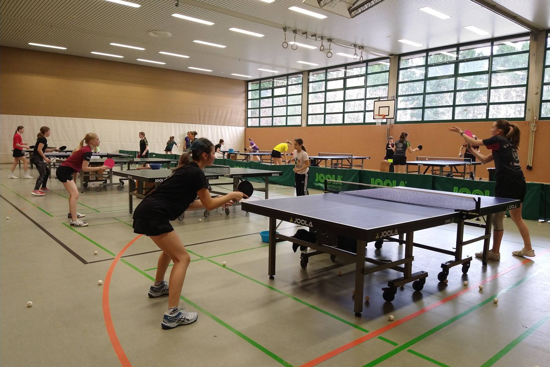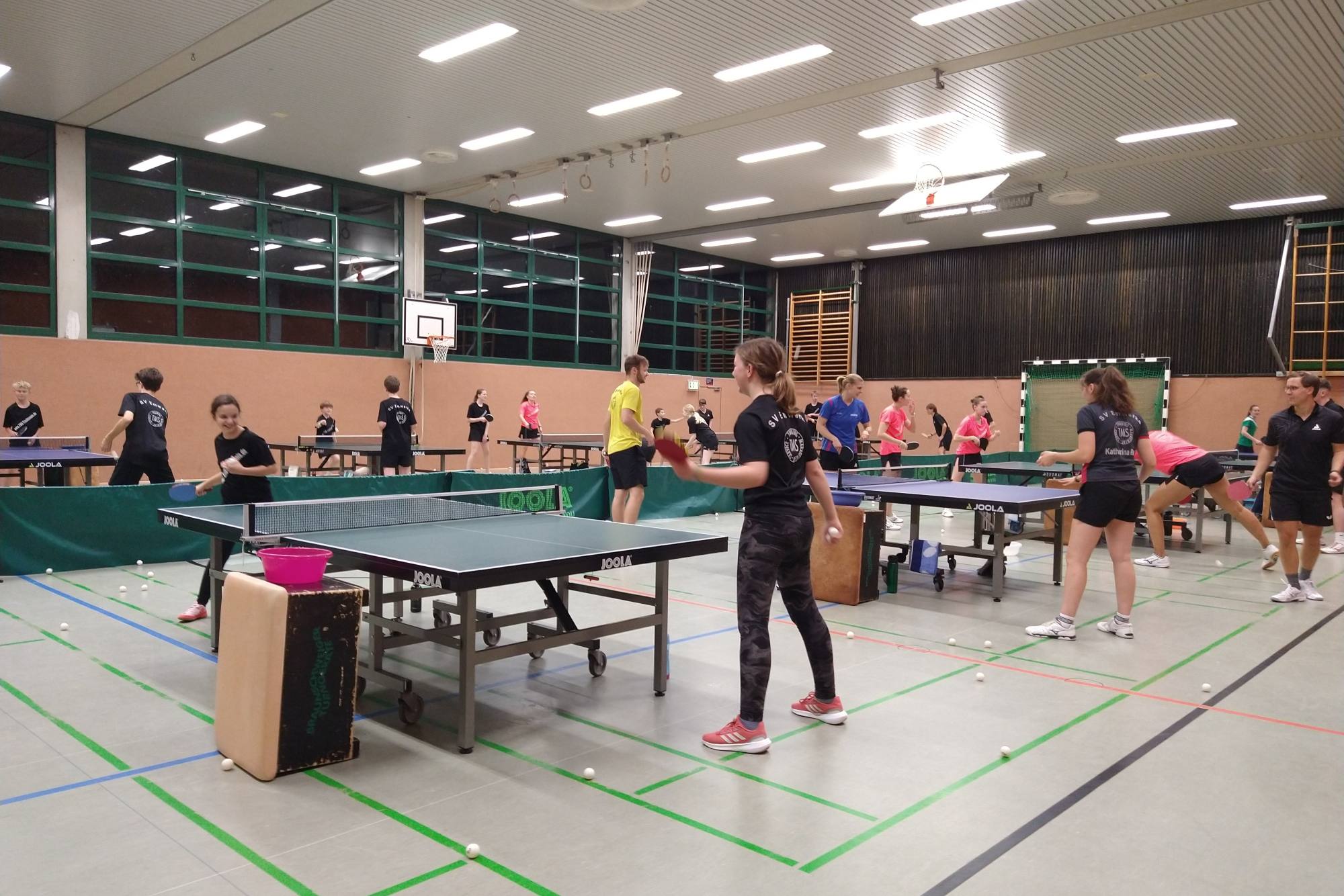 Nach dem Frühstück waren dann aber wieder alle dabei. In einer kurzen Theorie-Einheit von Pascal hat jede/-r seine eigenen Stärken beim Tischtennis herausgearbeitet und auch eine Übung dafür entwickelt. Beim anschließenden Training wurde diese dann ausprobiert und vielleicht auch noch verfeinert. Wenn ihr genau auf die Fotos schaut, fällt euch vielleicht etwas auf: Zuerst haben nur die Mädels trainiert und anschließend dann die Jungs. In den folgenden Einheiten wurde dann aber wieder bunt durchgemischt.
