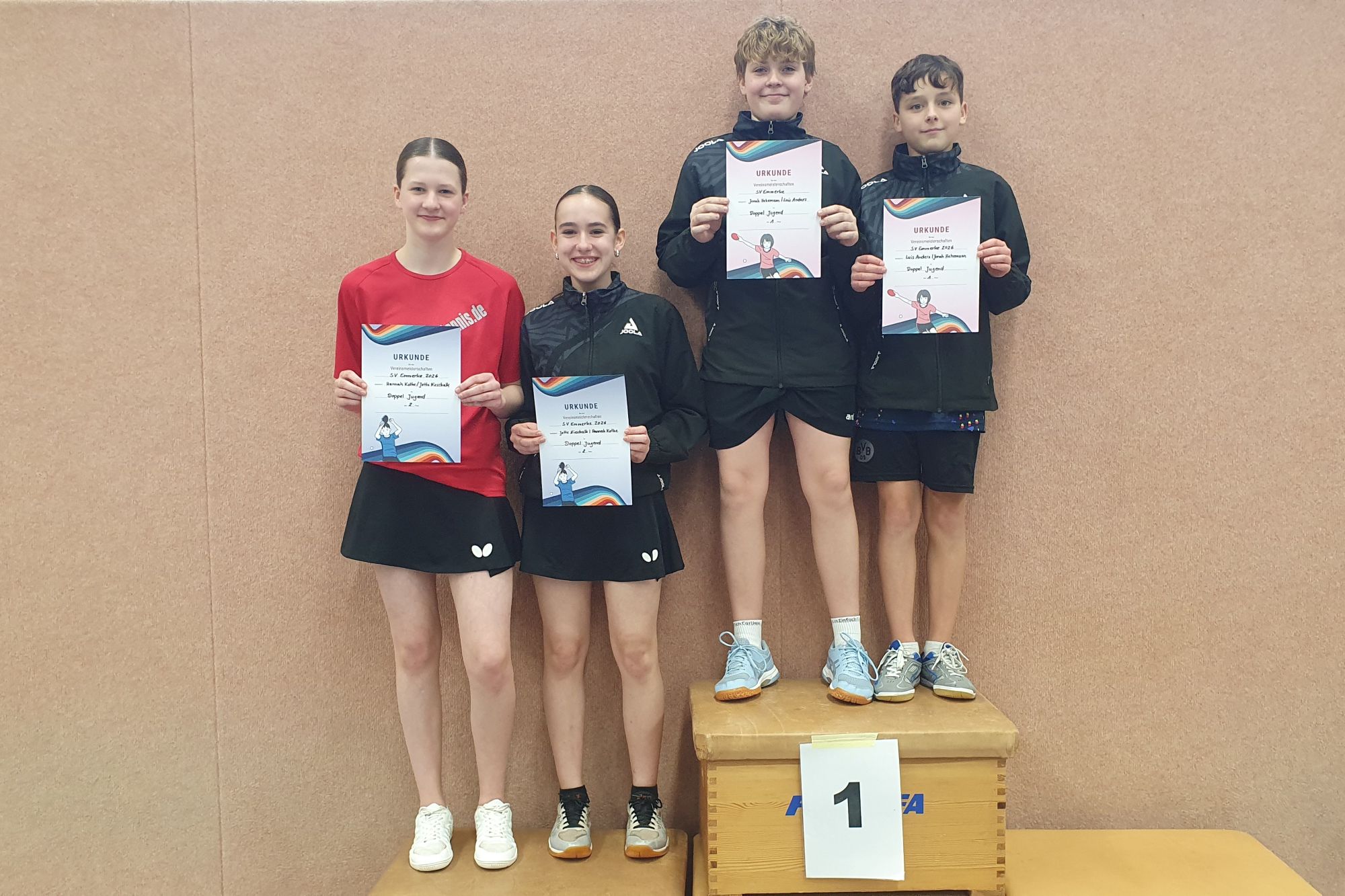 Diese vier setzten sich auch in der Doppel-Konkurrenz durch. Gold sicherten sich Hanna und Janik, Silber ging an Anton und Benjamin.