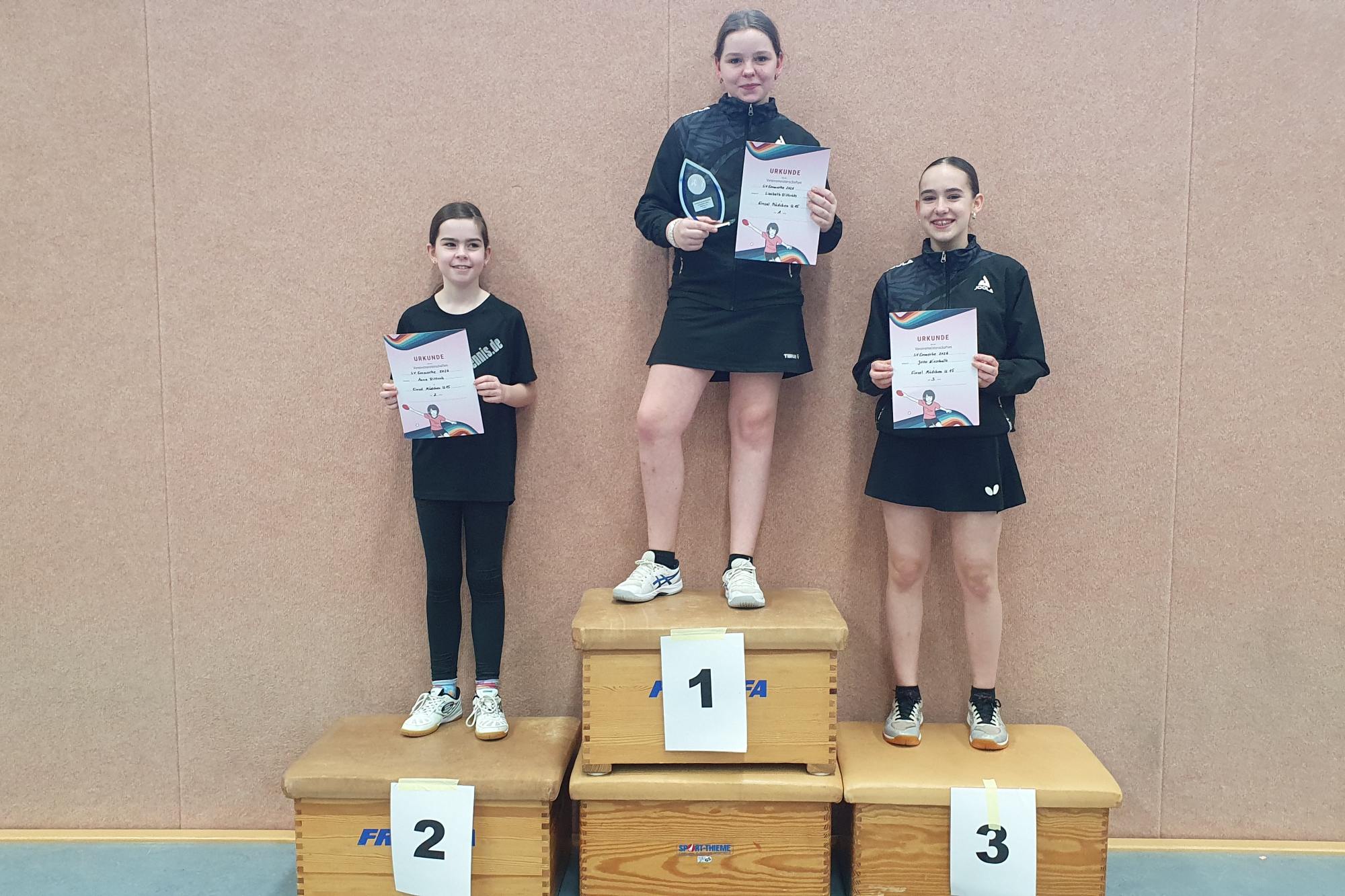 Und so sah die Siegerliste aus: Mädchen 15: 1. Lisabeth, 2. Anna, 3. Jette Jungen 15: 1. Luis, 2. Sam, 3. Lisabeth, Trostrunde: 1. Jette, 2. Theo
